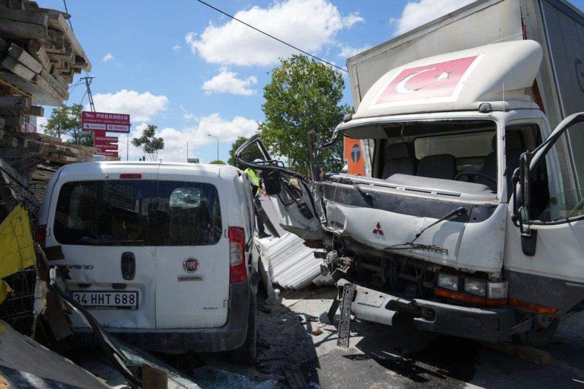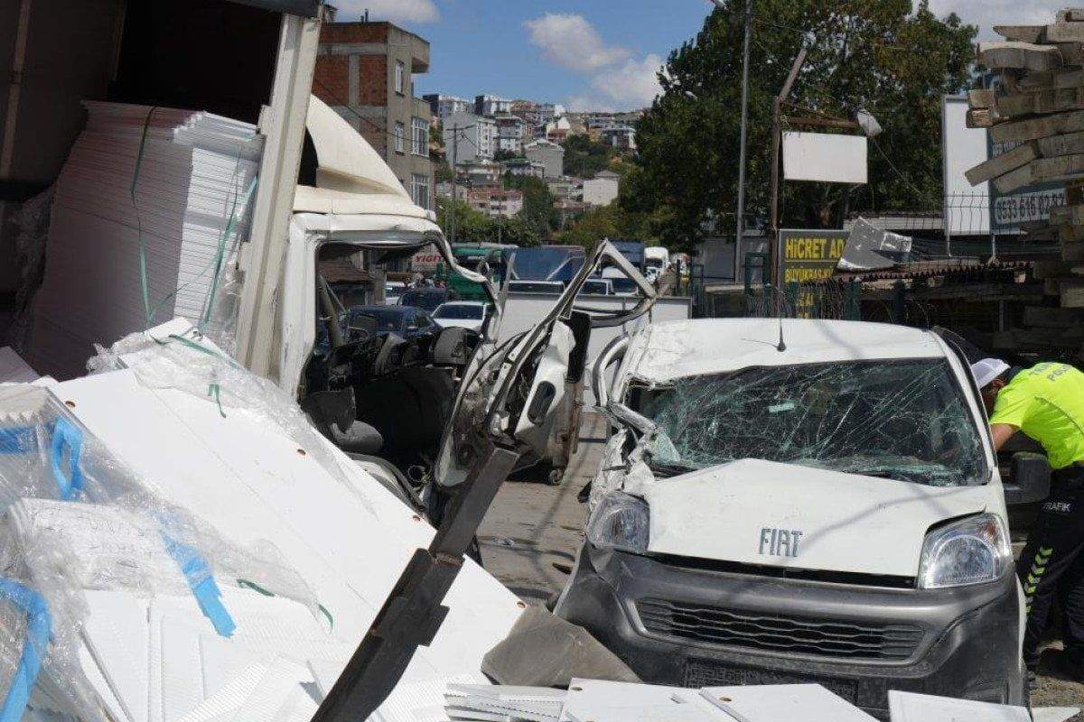 Çarpmanın etkisiyle hem kamyonet hem de çarptığı hafif ticari araç yoldan çıkarak kenara savruldu.