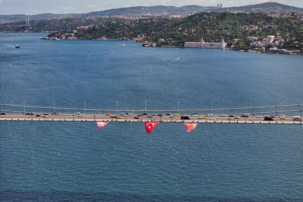 İstanbul Valiliği ve 15 Temmuz Derneği işbirliğinde düzenlenen etkinlikte, görevliler saat 05.00’te Yavuz Sultan Selim Köprüsü’ne, saat 07.00’de Fatih Sultan Mehmet Köprüsü’ne, saat 11.00’de ise 15 Temmuz Şehitler Köprüsü’ne 18 metre uzunluğunda, 12 metre genişliğinde Türk bayrağı astı.
