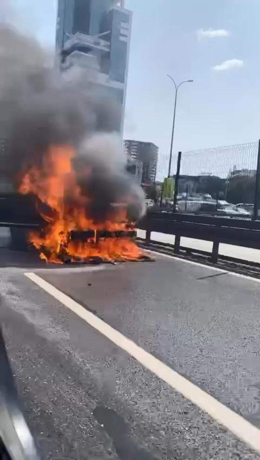 İstanbul Esenyur’tan geçen D-100 kara yolu Edirne istikametine seyreden araçta henüz belirlenemeyen nedenle yangın çıktı.