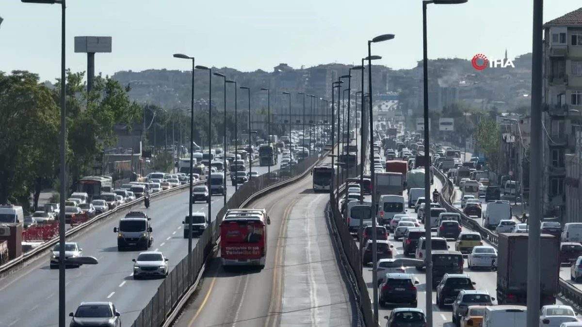 İSTANBUL – İstanbul’da E-5 karayolu Avcılar-Küçükçekmece hattında aynı anda yapılan çalışmalar nedeniyle trafik kaosu yaşanıyor. İBB Metrobüs yolu yenilemek Avcılar’da 1 şerit trafiğe kapanırken, TEİAŞ ise yeraltı yüksek gerilim kabloları çalışması nedeniyle Küçükçekmece’de 1 şerit trafiğe kapattı. Kilometrelerce oluşan kuyruk havadan çekilen görüntülere yansıdı.