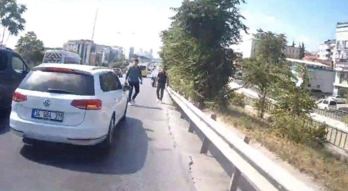 Çevredeki sürücülerin korna sesleri sonrası şahıs yoluna devam etti.