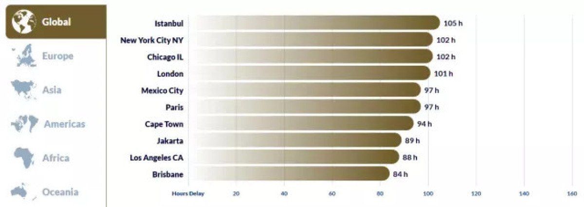 Inrix tarafından ‘Şehirlere Göre En Yüksek On Trafik Süresi’ başlığıyla paylaşılan verilerde, megakent trafikte zirveye yerleşerek New York’u bile geride bıraktı.