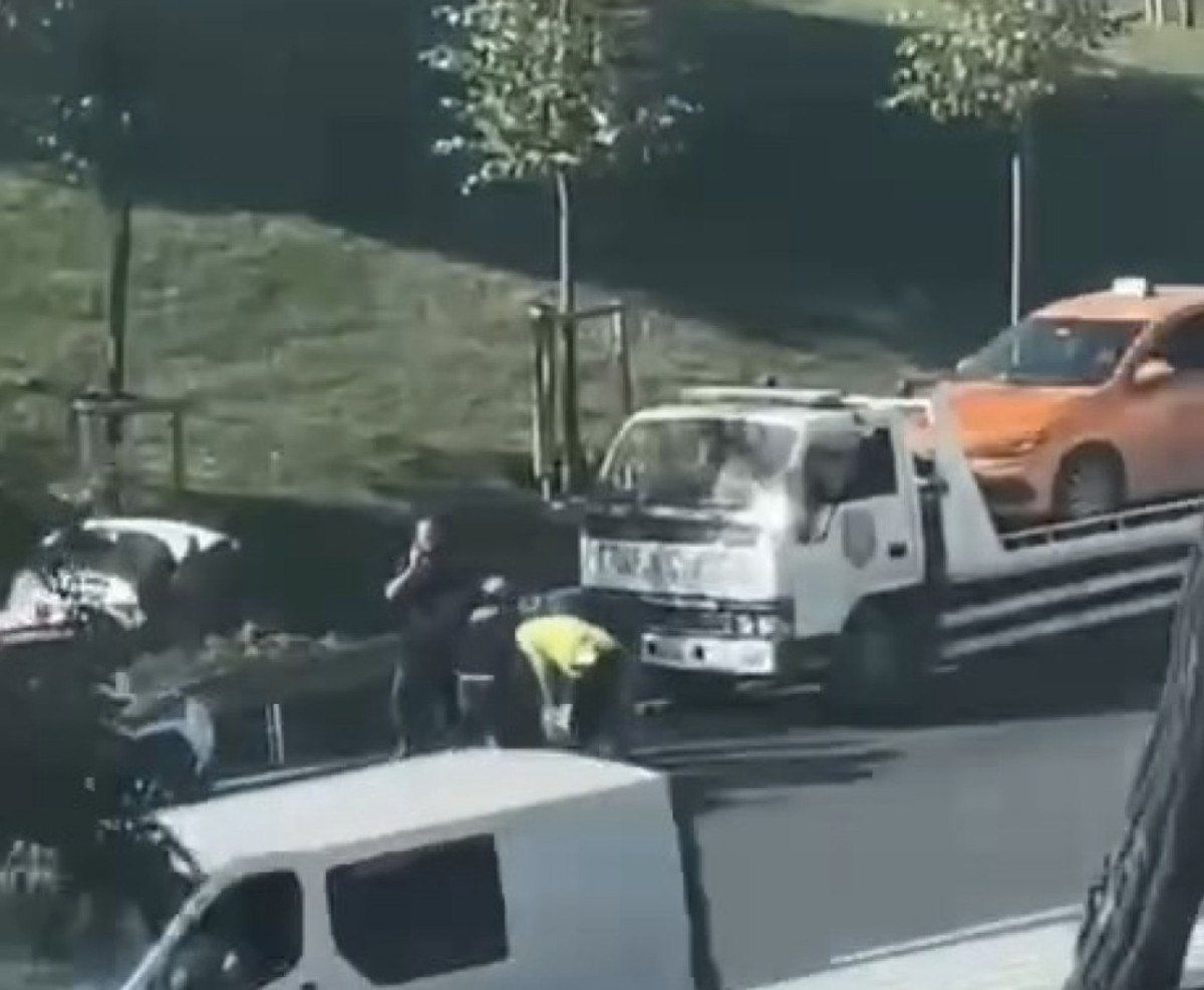 Çekici yardımıyla taksi olay yerinden götürülmek istendi. Şoför, taksiyi çekmek isteyen ekiplere saldırdı.