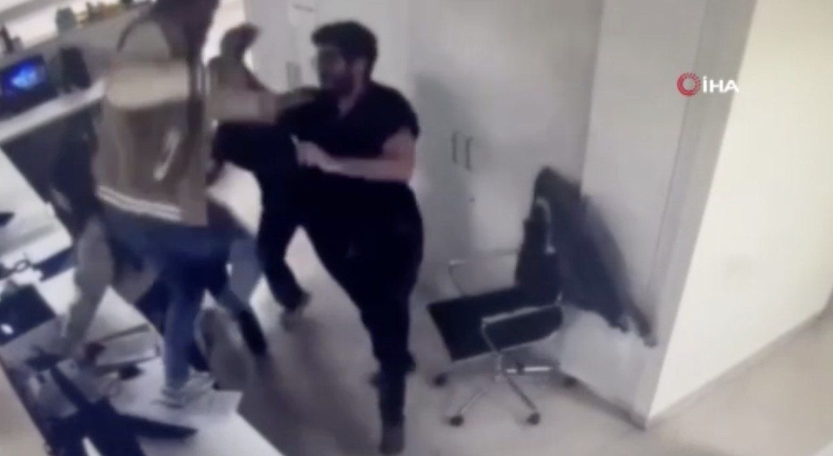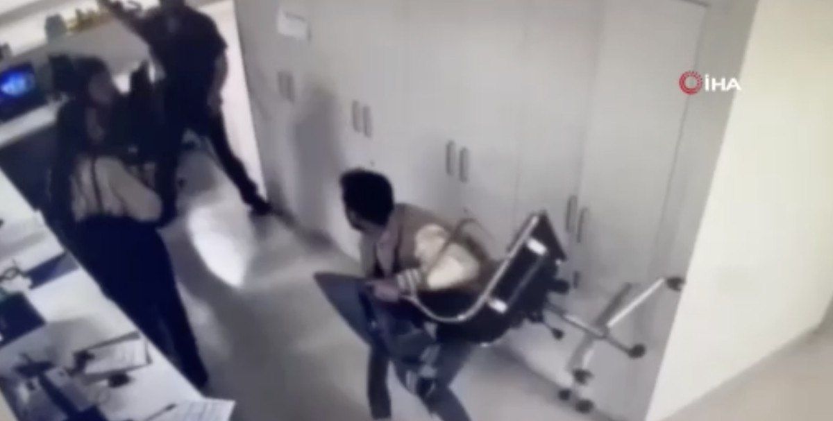 Şahıs, bankonun üzerinden atlayarak doktora sandalye fırlattı.