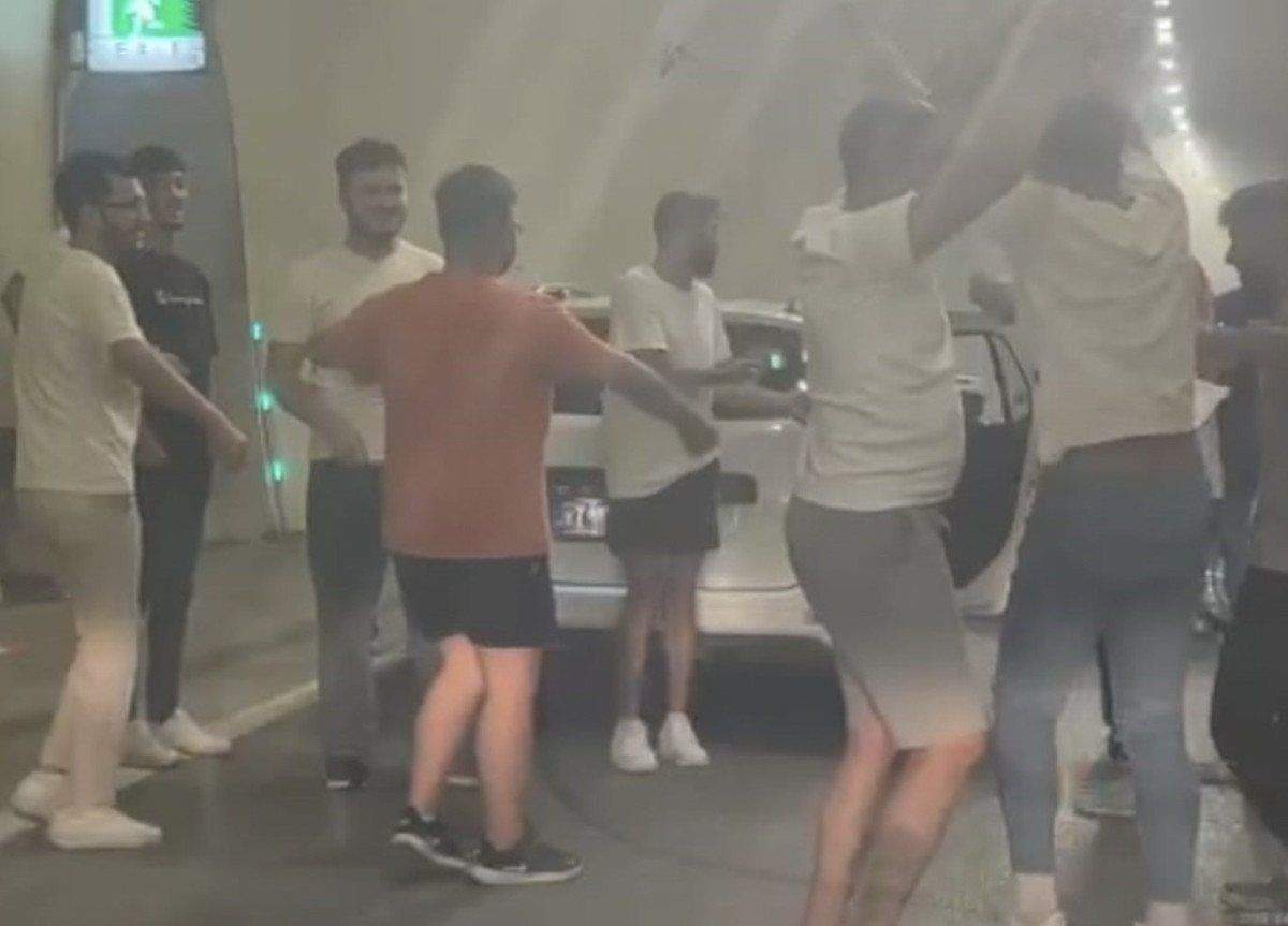 Bir süre sonra konvoyun hareket etmesiyle yol trafiğe açıldı. Grubun tüneli trafiğe kapatarak eğlendiği anlar trafikteki sürücülerin cep telefonu kamerasına yansıdı.