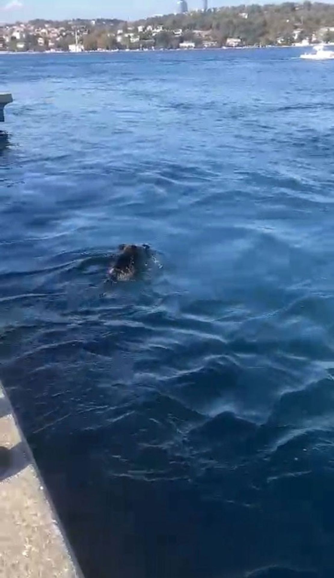 Kıyıdan yüzerek ilerleyen domuz, vatandaşların cep telefonu kamerasına yansıdı.