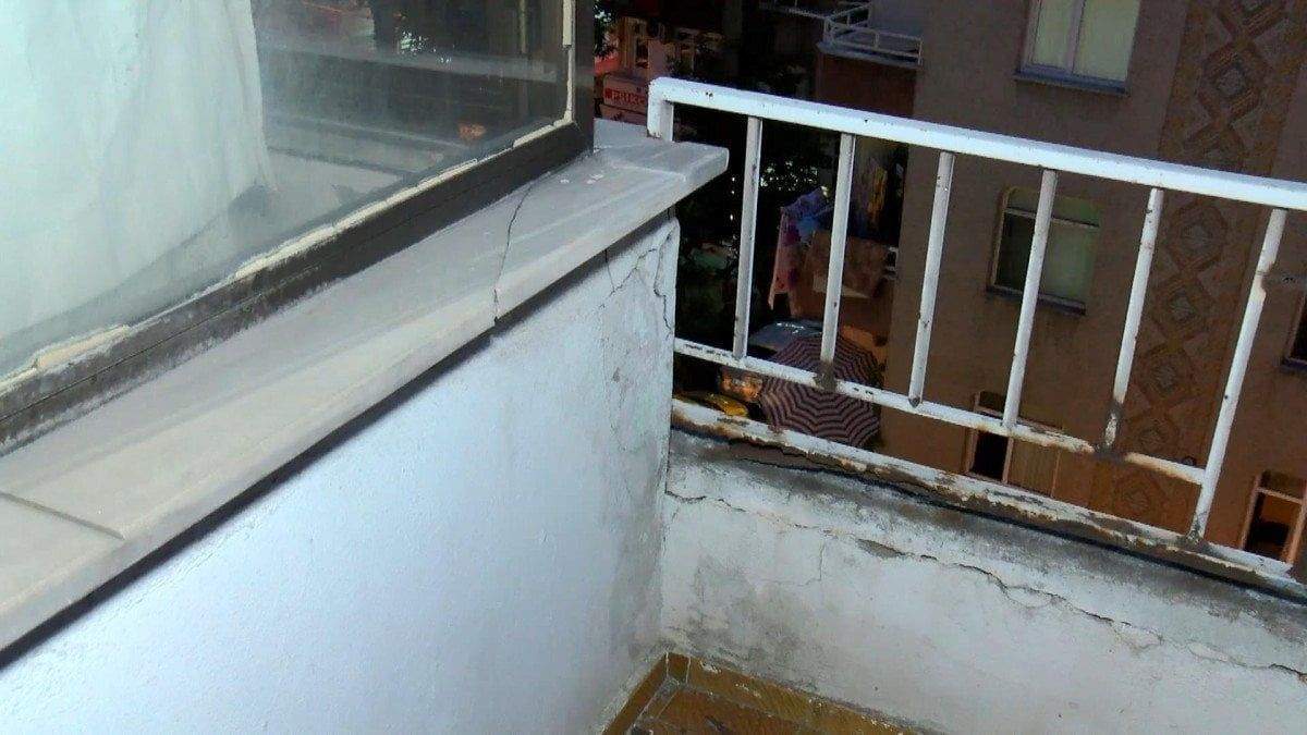 Beton parçalarının düştüğü gün evde olmadığını belirten Ülkü, döküntüleri ertesi gün evine döndüğünde fark etti.