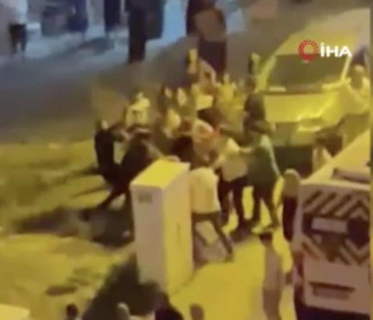 Düğün salonundan sokağa kadar taşan yumruklu kavga, çevredekiler tarafından kayda alındı.