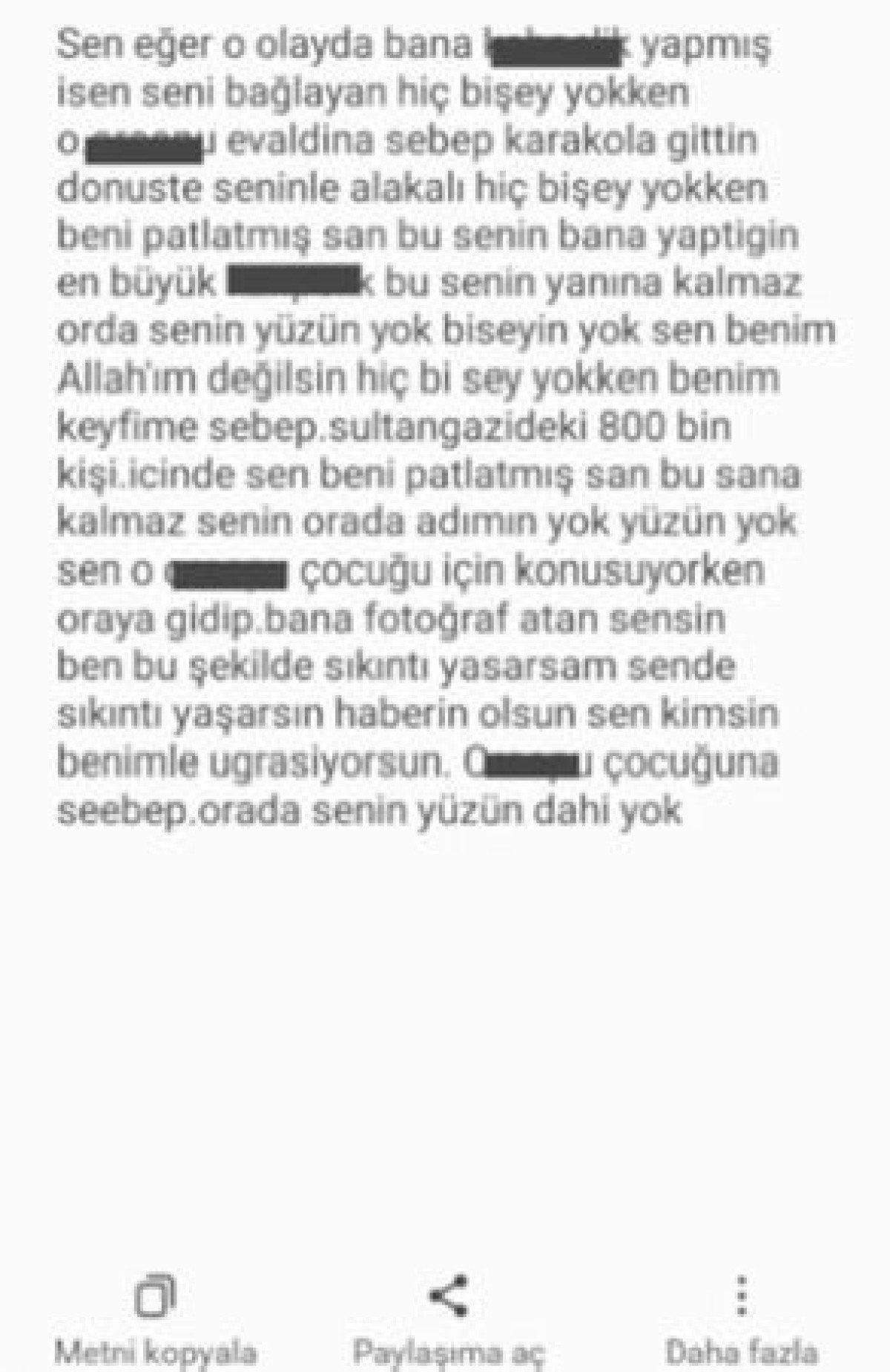 Abimi vurduktan sonra bu kez beni erkek kardeşimle tehdit etmeye başladı. Ayrıca beni de öldürmekle tehdit ediyor. Hiçbir kadın bunu haketmiyor. Sesimizi hiçbir şekilde duyuramıyoruz. Sesimizin duyulmasını istiyoruz. Bu kişilerin en kısa zamanda yakalanmasını istiyorum” dedi