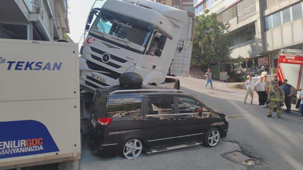 Bir süre sonra freni boşan tır, sokağın dik yokuş olması nedeniyle kaymaya başladı.