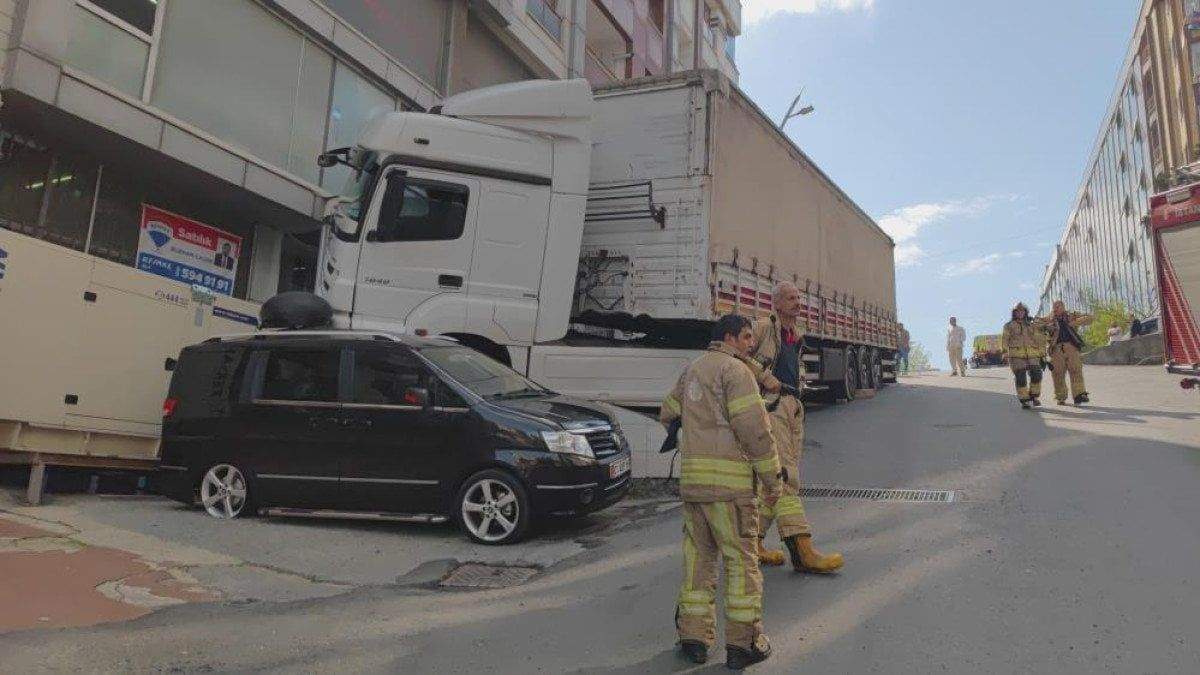 Önce fabrika önündeki jeneratöre çarpan tır, duvarın dibindeki hafif ticari aracın üzerine düştü.