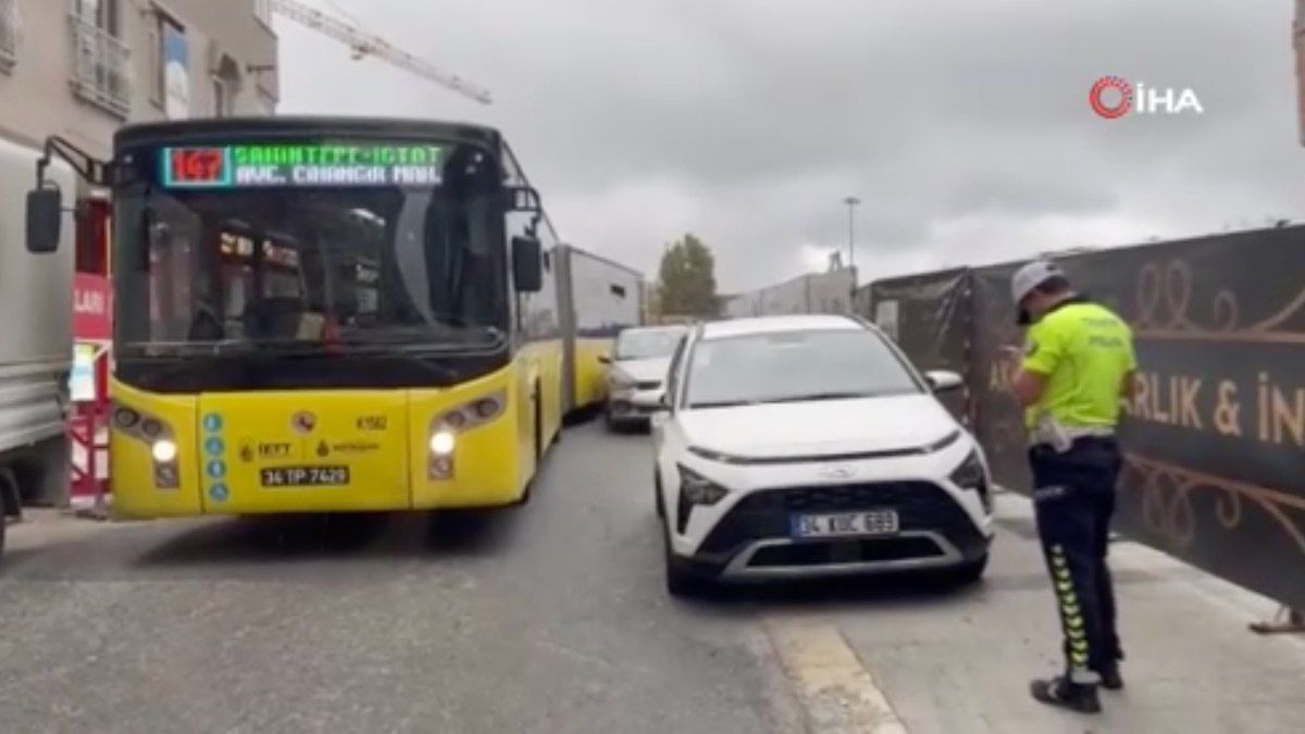 Avcılar ilçesi Merkez Mahallesi’nde caddeden sokağa girmek için dönen İETT otobüsü, hatalı park yapan otomobil nedeniyle yaklaşık yarım saat trafiği kilitledi.