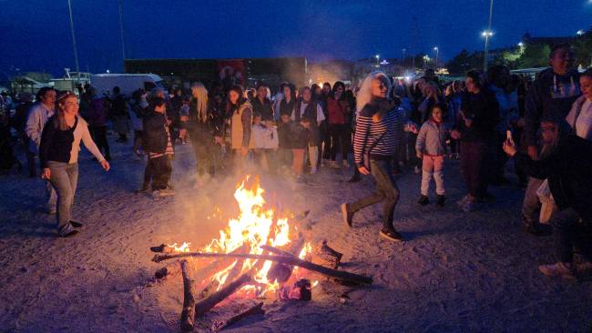 Şenlikte kimi katılımcılar şarkılar eşliğinde dans ederken, kimisi de kamp sandalyelerine oturarak gecenin keyfini çıkardı.