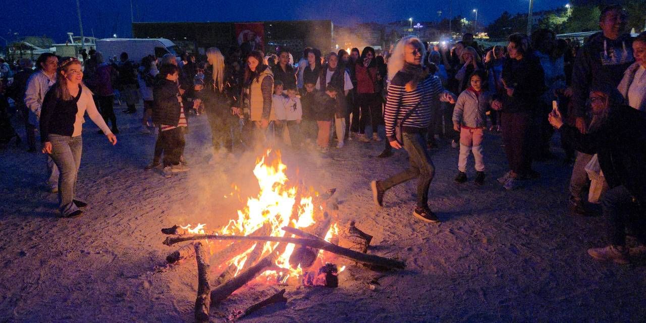Havanın kararmasıyla yakılan ateşin etrafında toplanan katılımcılar, dilek tutarak 3 kez ateşin üzerinden atladı.