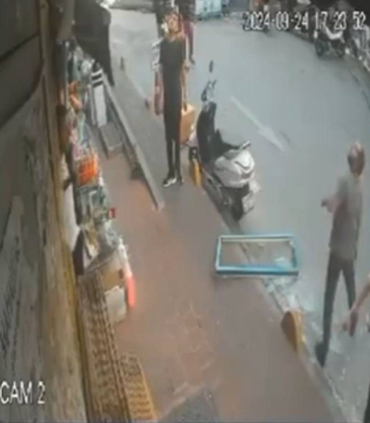 Cam çerçevenin düştüğü anlar güvenlik kamerasına yansıdı.