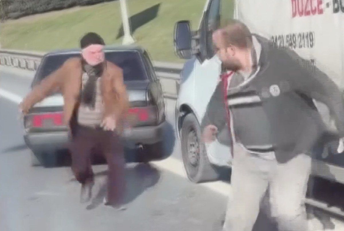 Bunun üzerine otomobil sürücüsü ise bıçak çekip, kamyonet sürücüsünü kovalamaya başladı. Olayda kimse yaralanmazken yaşanan anlar başka bir sürücünün cep telefonuna yansıdı.