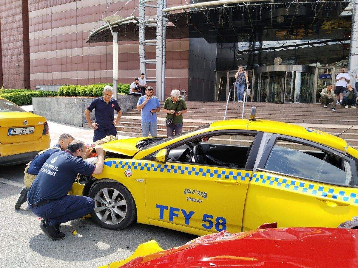 Lüks otomobilin sürücüsü ve park halindeki taksinin içinde bulunan 2 yolcu yaralandı.