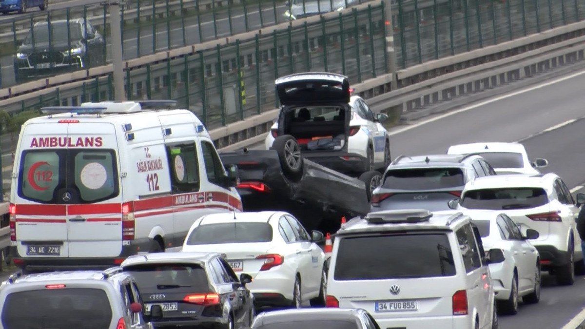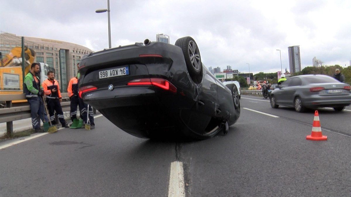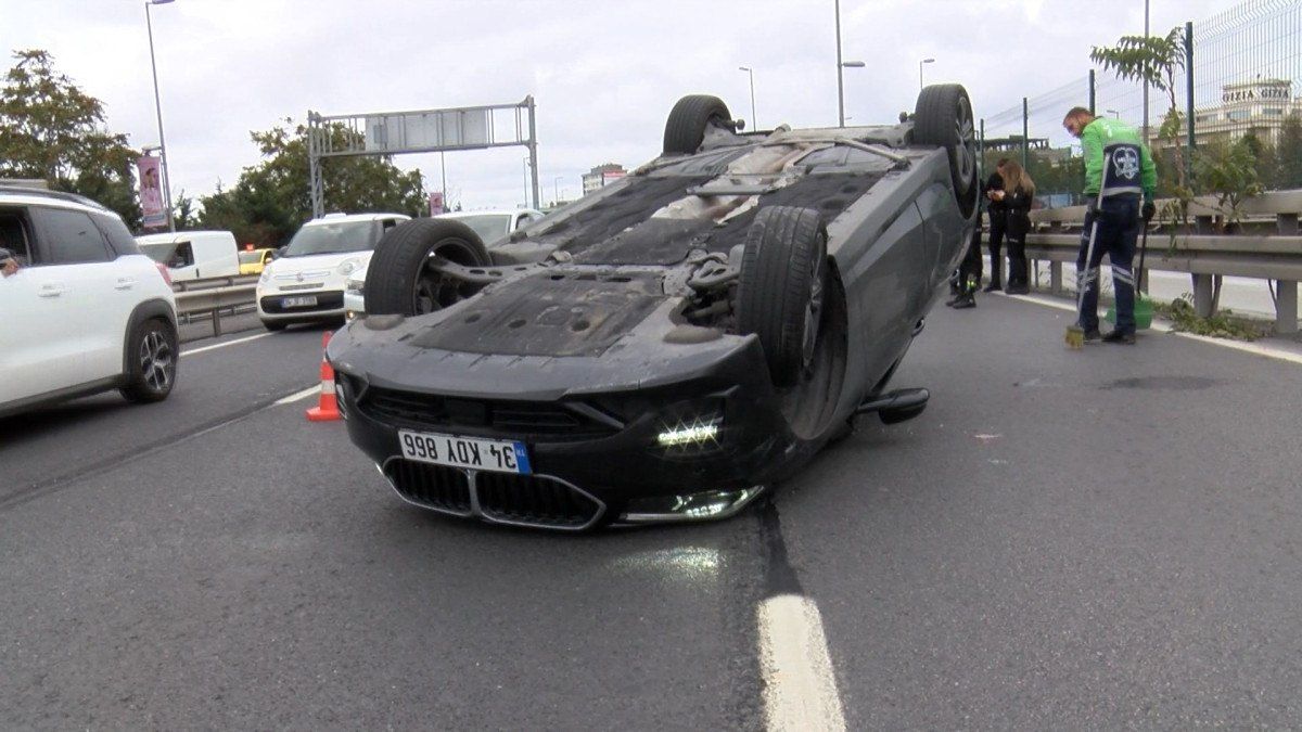 İstanbul’da kontrolden çıkan otomobil ters döndü