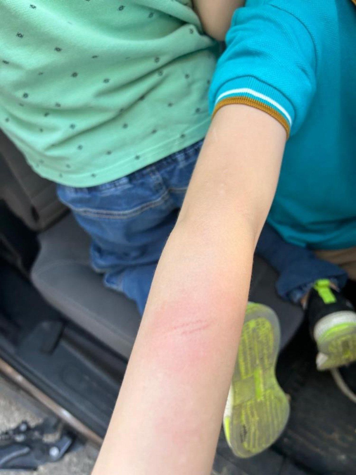 Hastaneye gidip rapor aldıklarını anlatan Sevin, “Adli rapor çıkartıldı. Kolunda bir yara, kırbaç gibi vurulmuş. Yanmış ve ödem toplamış, raporda da var. İşlem bittikten sonra karakolda çocuk şubeye gittik. Şikayetimizi yaptık” diye konuştu.