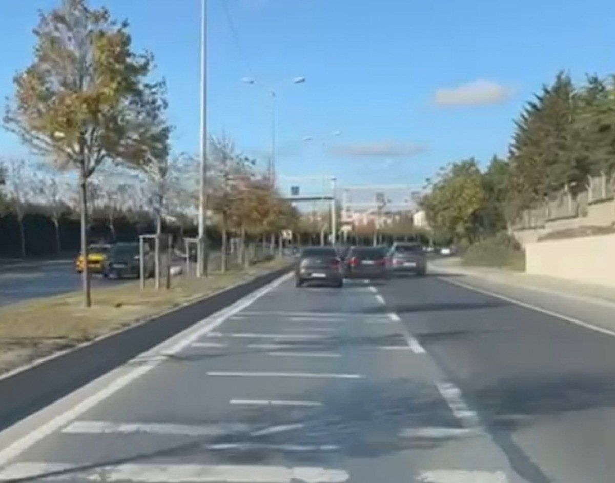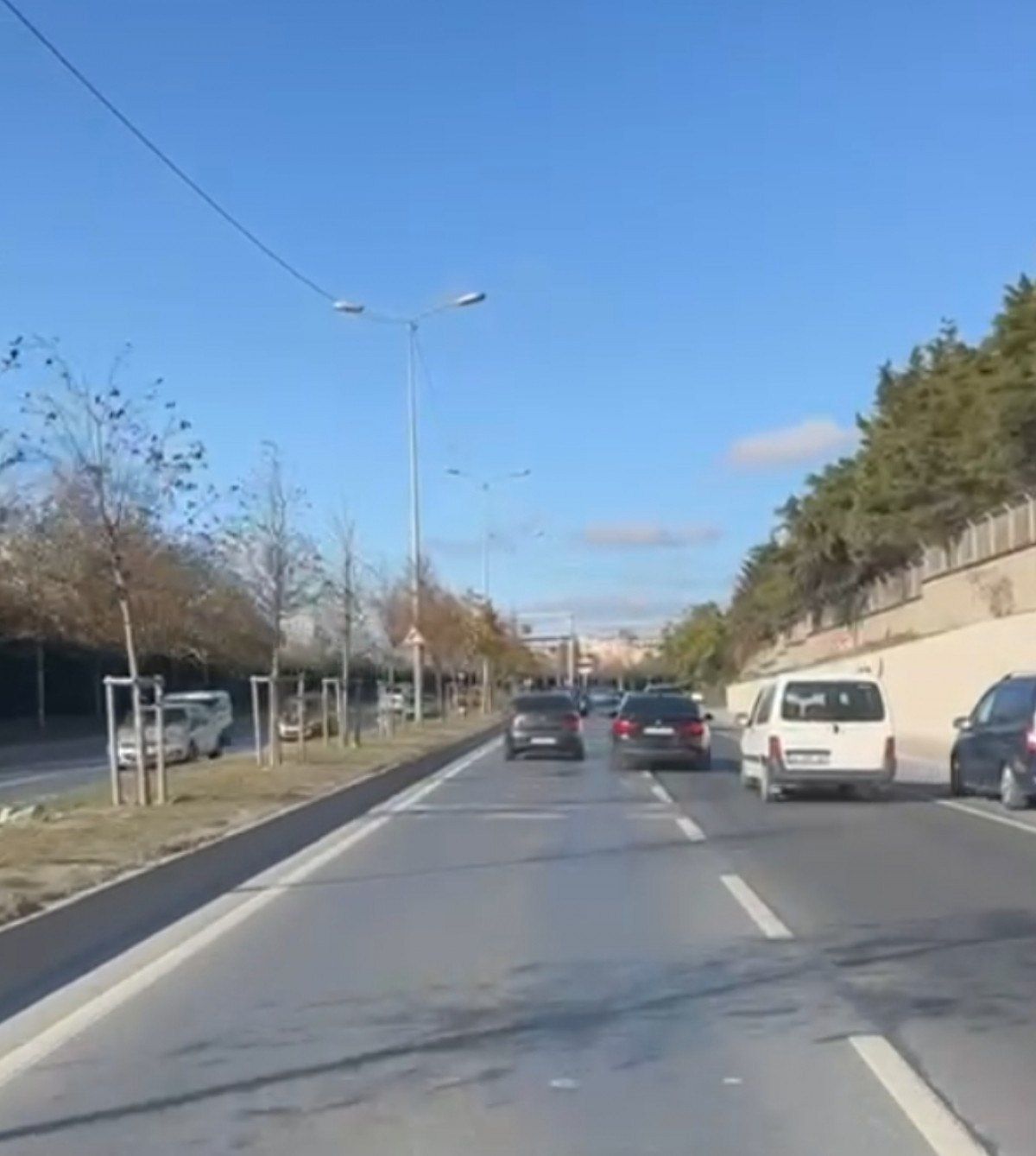 Gözden kaybolana kadar bu şekilde ilerleyen sürücü hem kendi canını hem de diğer sürücülerin canını tehlikeye attı.