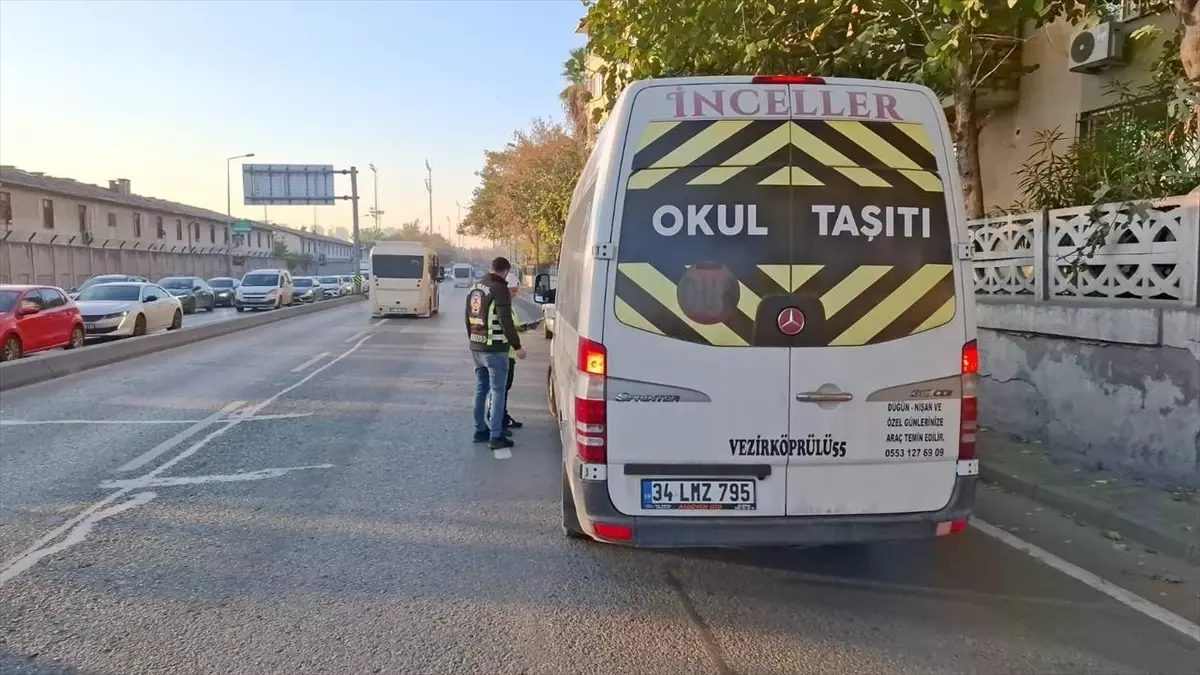 İstanbul'da öğrenci servislerine yönelik denetimlerde sürücü belgeleri kontrol edildi, emniyet kemeri vurgulandı.