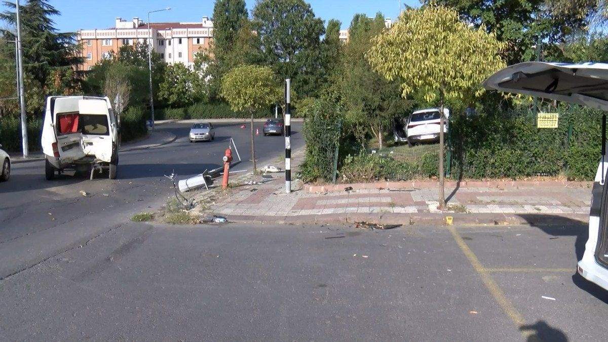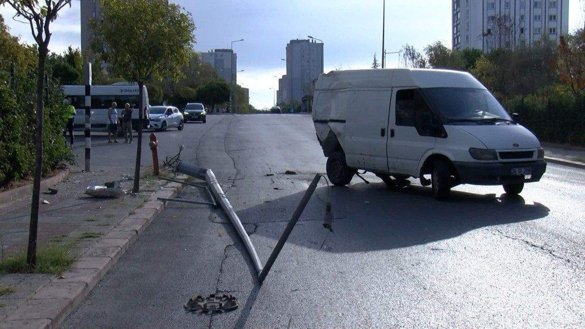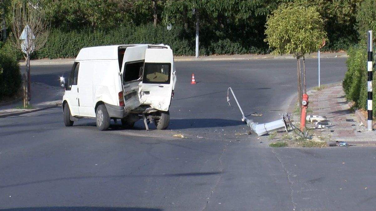 Çarpmanın etkisi ile panelvan araç savrulup sokaktaki aydınlatma direğine vurdu.