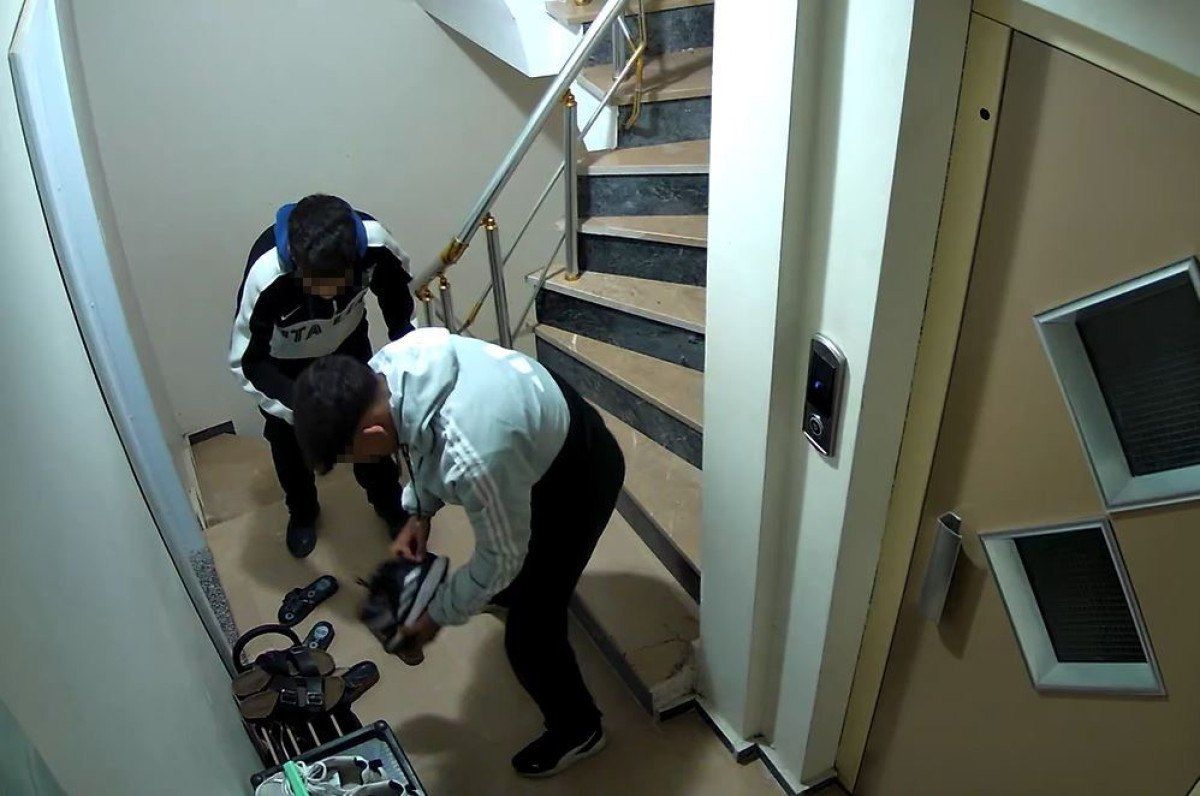 Arnavutköy’de bir apartmana hırsızlık için giren 2 şahıs apartman dairelerinin önündeki ayakkabıları incelediği esnada gördükleri pahalı ayakkabı karşısında şaşkınlıklarını gizleyemeyerek birbirlerine “çak” yaptı.