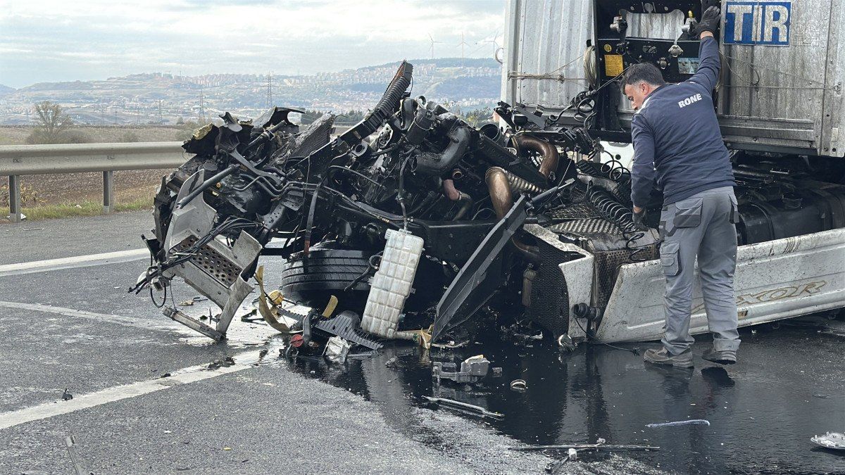 Çarpmanın etkisiyle park halindeki tırın dorse kısmı ağır hasar alırken, sürücüsünün kontrolünden çıkarak kazaya karışan diğer tırın dorsesi yerinden koparak otoyola savruldu.
