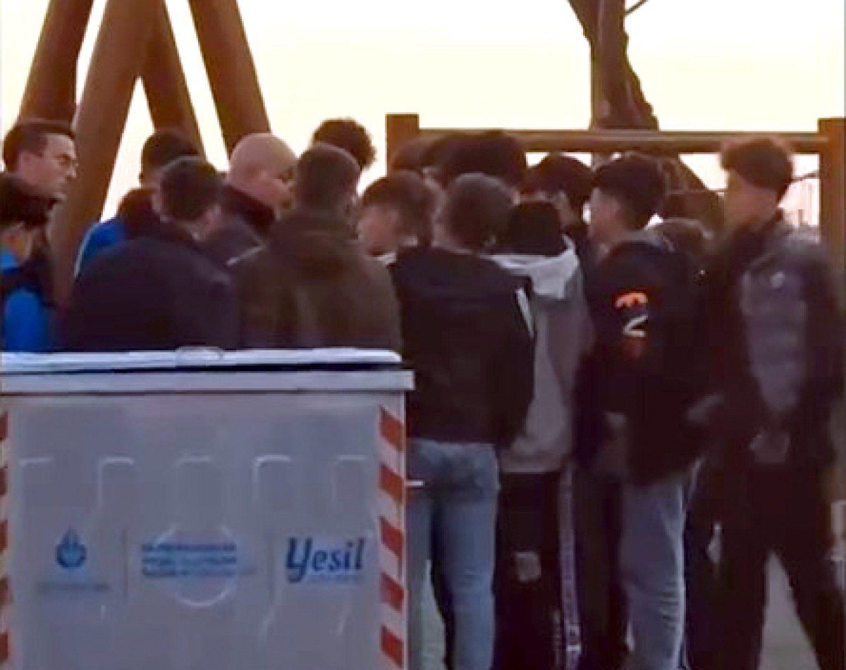 O sırada parkta bulunan çocuklar ve aileleri durumdan rahatsız oldu. Kısa sürede olay yerineparkın güvenlik görevlileri geldi.