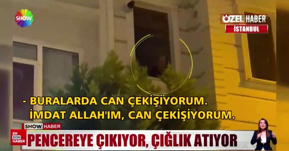 Show Tv’nin haberine göre, 2 yıldır penceresine çıkan yaşlı kadının, “İmdat ölüyorum, ölüyorum. Allah’ım, kurtar Allah’ım. Polis imdat. Polis gelsin Allah’ım. Parçalandım, parça parçayım. Avuç avuç zehir atmışlar, nefesim boğazımda. Katil cani, katil caniler beni öldürür. Buralarda can çekişiyorum. Kim haklı kim haksız Allah bilir.” gibi sözler söylediği ve çığlık attığı görüldü.
