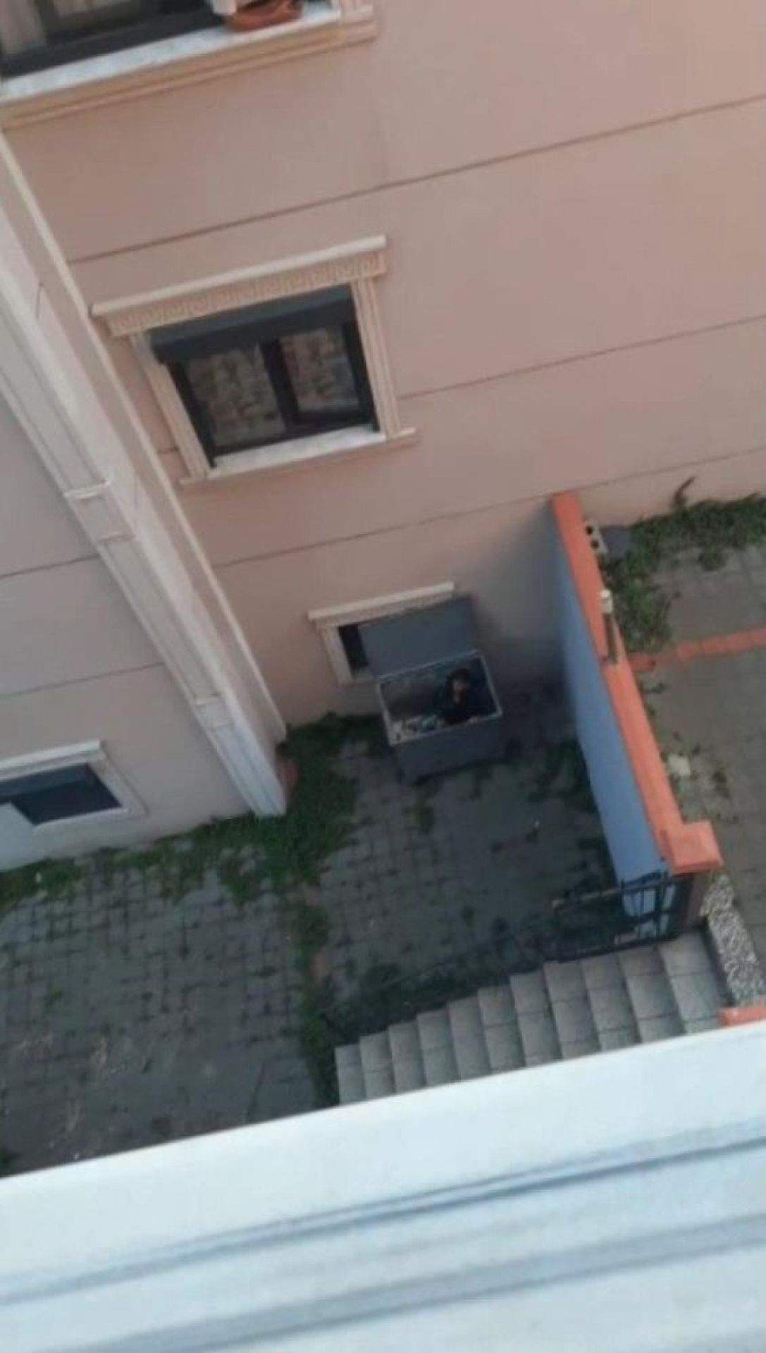 Şahsın çöp konteynerine saklandığı anlar vatandaşın cep telefonu kamerasına yansıdı.