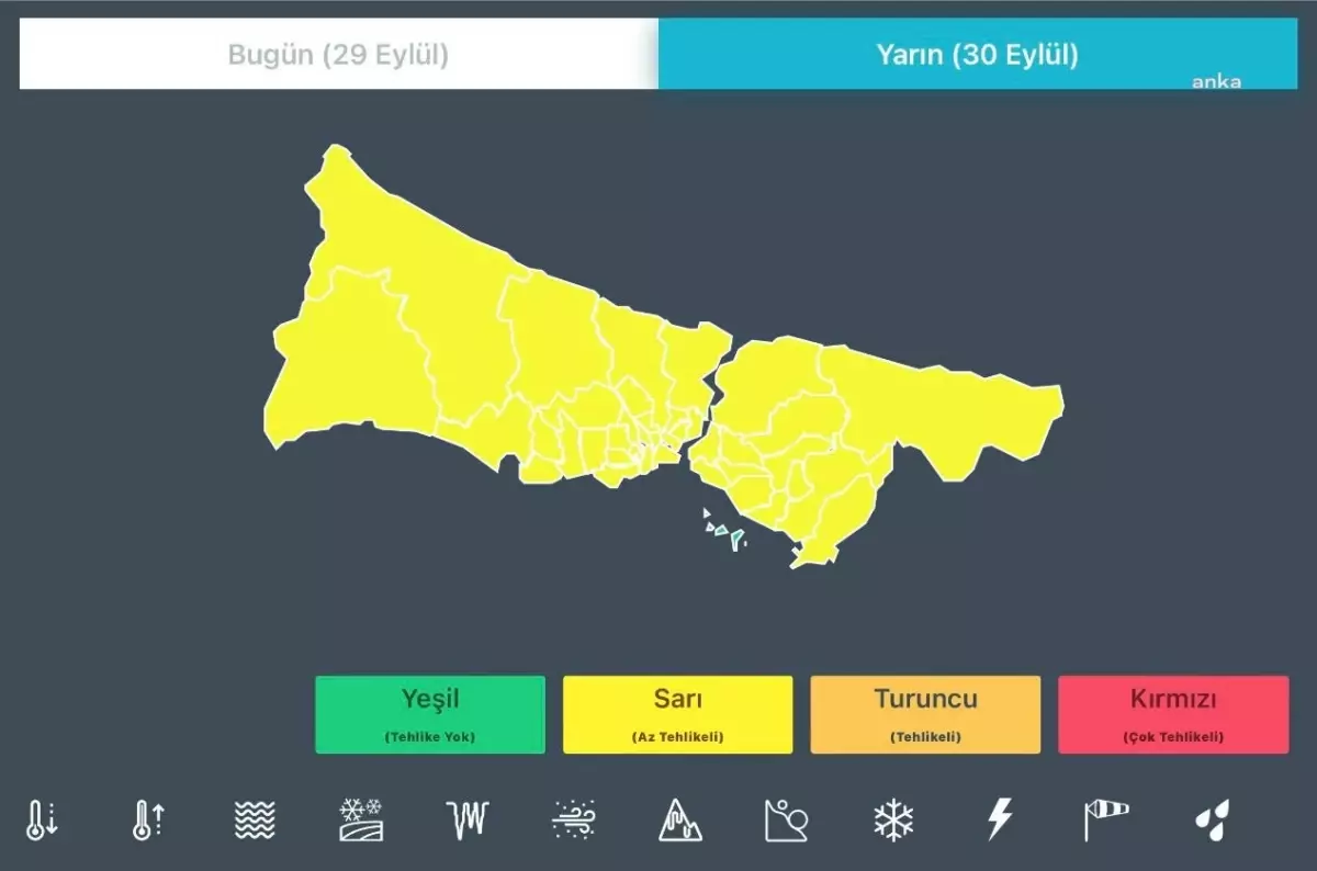 Meteoroloji Genel Müdürlüğü tarafından yapılan son değerlendirmelere göre; saat 23.00’ten itibaren yarın 07.00’ye kadar İstanbul’da yerel kuvvetli sağanak ve gök gürültülü sağanak yağış bekleniyor.