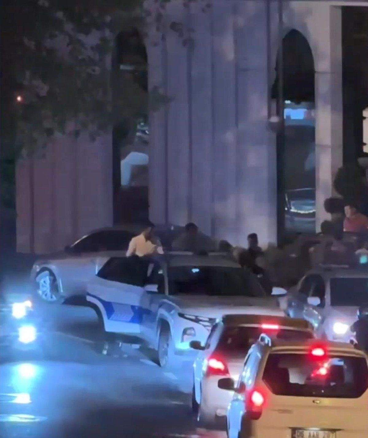Avcılar ilçesinin Denizköşkler Mahallesi üzerinde gece saatlerinde bir restorandan çıkan ve alkollü oldukları iddia edilen 3 kişi taşkınlık yapmaya başladı.