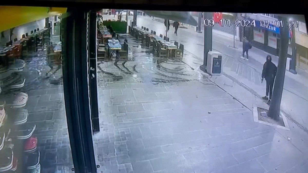 Mağazaya gelen bir çocuğun çalışanlara not verip ayrılması ve yüzü maskeli bir kişinin iş yerinin önüne gelerek, hem silahlı saldırı düzenlemesi ve bu saldırıyı cep telefonuyla kaydetmesi saniye saniye güvenlik kameralarına yansıdı.