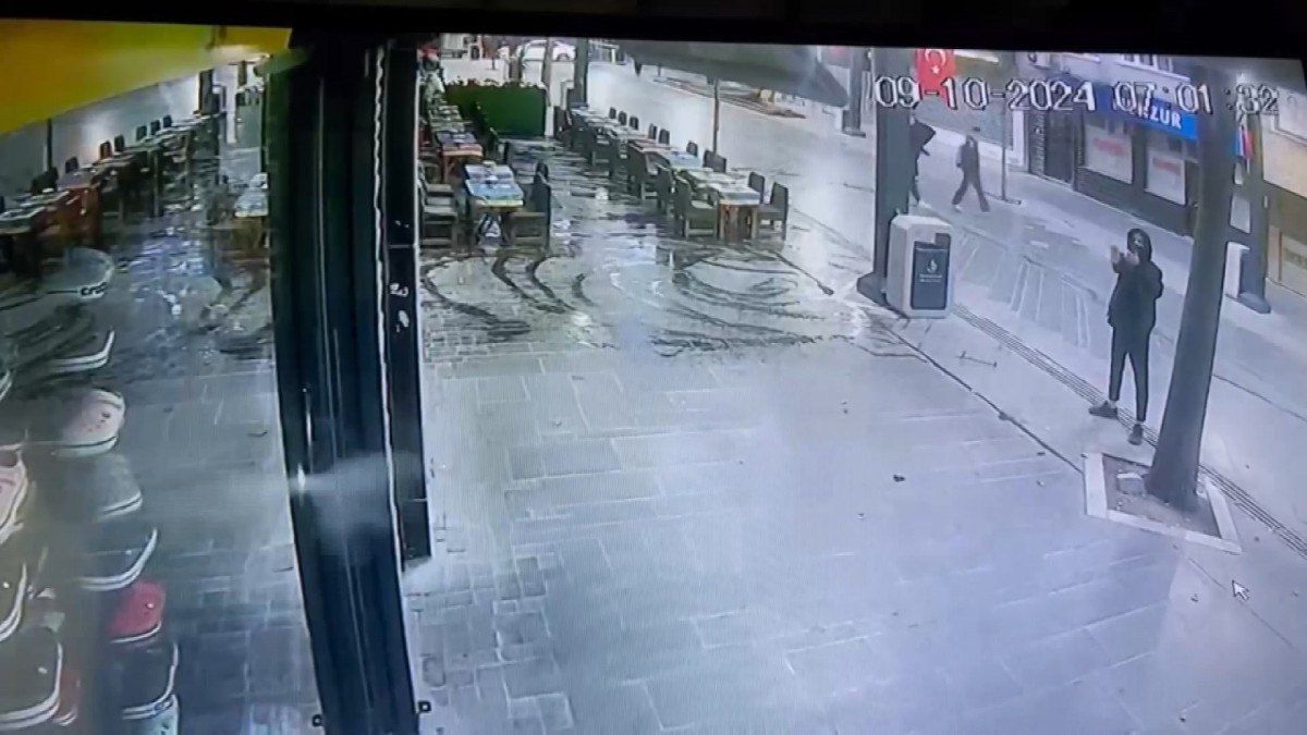 Dün sabaha karşı mağazanın önüne gelen yüzü maskeli şüpheli, tabancayla iş yerine peş peşe ateş ederken saldırıyı da cep telefonuyla kaydetti.