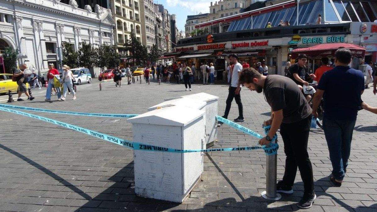 Kentin en işlek yerlerinden olan Taksim Meydanı’nda tehlike saçan trafonun etrafına, polis ekiplerince güvenlik şeridi çekildi.