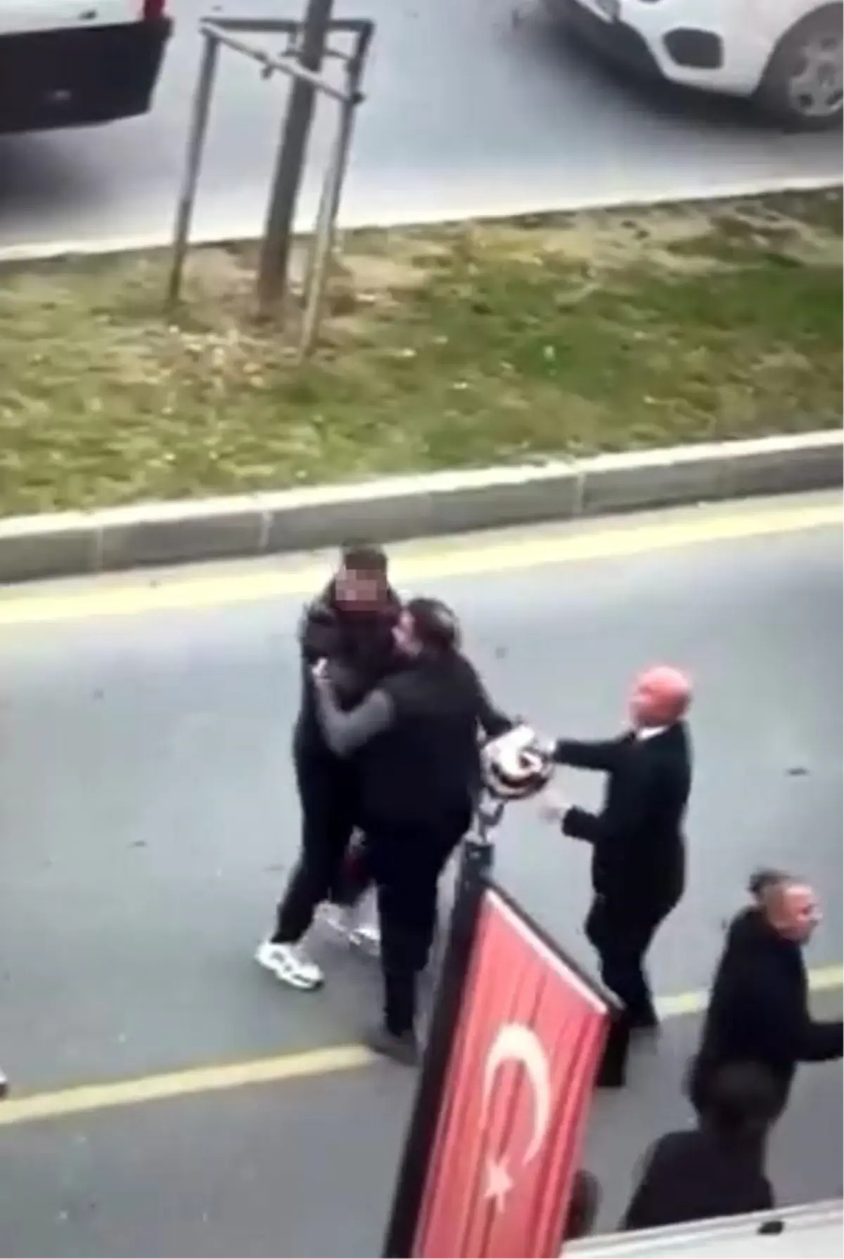 Kavga sırasında, hafif ticari araç sürücüsü, motosikletli babaya yanında bulunan küçük çocuğun gözleri önünde saldırdı. Taraflar birbirlerine tekme, yumruk ve kaskla vururken, çevredeki vatandaşlar kavgayı ayırmakta güçlük çekti. Yaşanan kavga anları, olay yerinde bulunan bir vatandaş tarafından cep telefonu kamerasıyla saniye saniye kaydedildi.