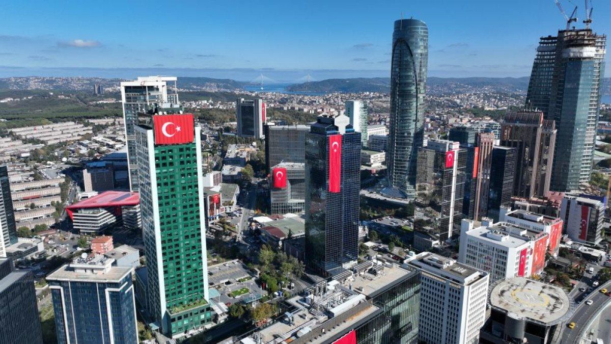 29 Ekim Cumhuriyet Bayramı’nın 101’inci yılı nedeniyle İstanbul’daki gökdelenlere ve binalara dev Türk bayrakları asıldı.