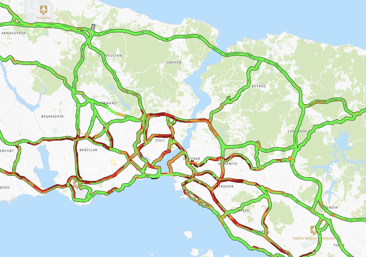 Megakentte trafik yoğunluğu saat 16.10 yüzde 62 olarak ölçüldü.