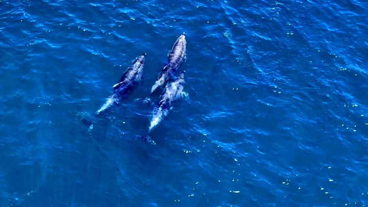 Yaz mevsiminde daha çok görünün yunusların İstanbul’da masmavi denizde dans edercesine yüzdüğü anlar havadan görüntülendi. Yunusların kimi zaman diğer grup üyeleriyle kimi zamanda tek başlarına balık avlarken ortaya çıkardığı manzara belgeselleri aratmadı.