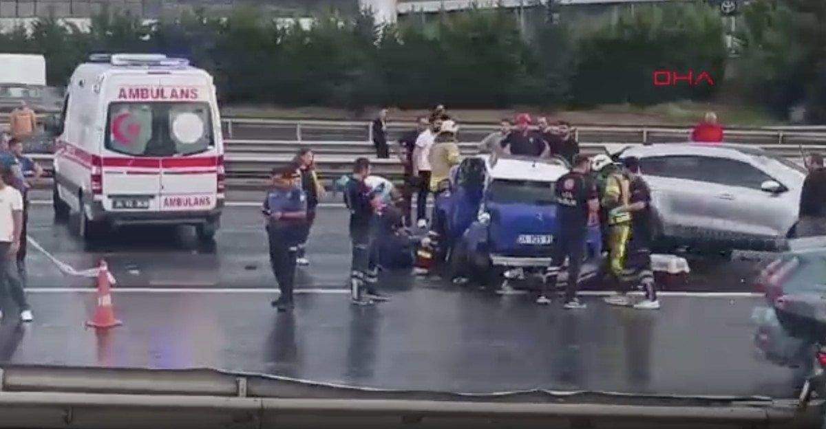 Bağcılar, TEM Otoyolu’nun İSTOÇ mevkiinde orta şeritte ilerleyen 8 araç feci şekilde birbirine çarptı.