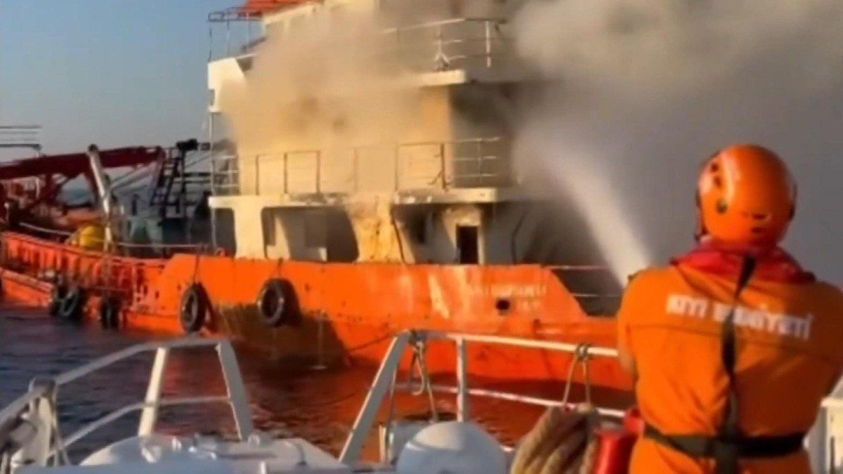 Ekiplerin gemide çıkan yangına müdahalesi sürüyor.