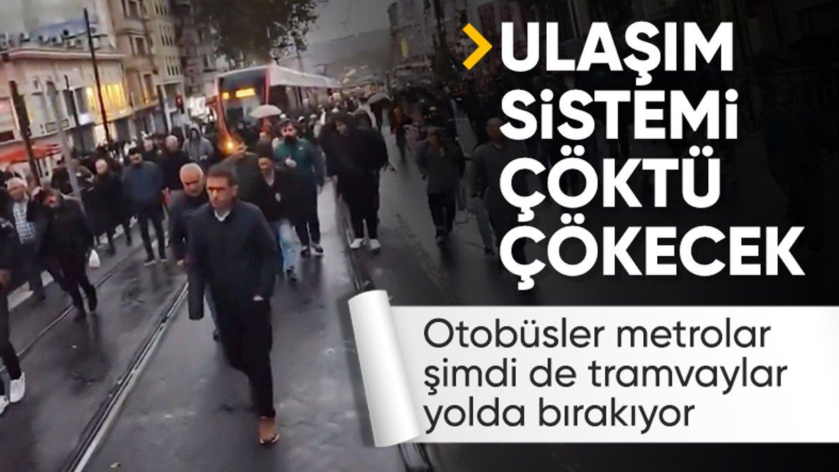 Sağanak ve kuvvetli rüzgar sonrası Kabataş – Bağcılar tramvayında yaşanan arıza nedeniyle İstanbullular sağanak yağmur altında yürümek zorunda kaldı.