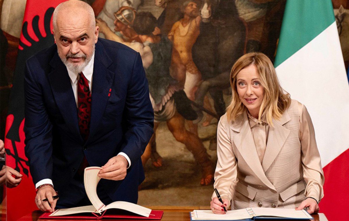 İtalya Başbakanı Giorgia Meloni ve Arnavutluk Başbakanı Edi Rama’nın 6 Kasım 2023’te Roma’da imzaladığı anlaşma, İtalyan güvenlik güçleri tarafından Akdeniz’de kurtarılan düzensiz göçmenlerden bir bölümünün Arnavutluk’a nakledilmesini ve iltica taleplerinin inceleme süresince burada kalmasını öngörüyor.