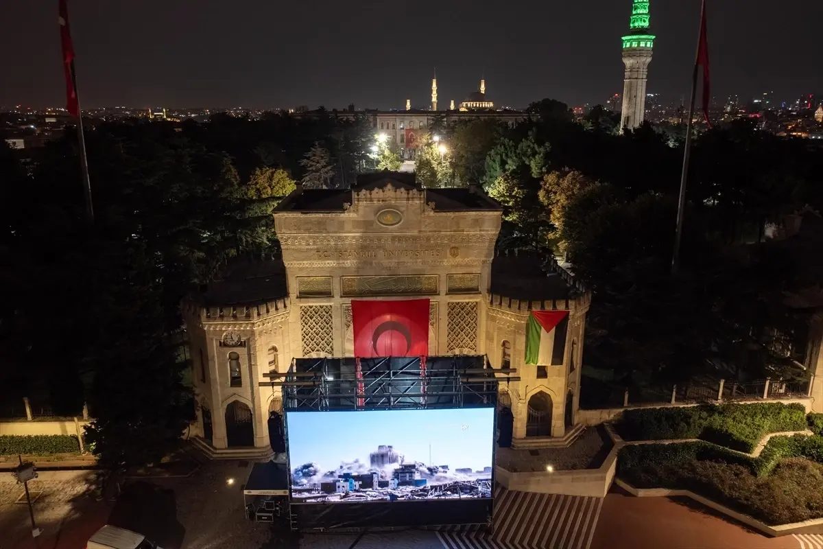 Üniversitenin Beyazıt’taki tarihi ana kapısı önünde bugün gerçekleştirilen etkinlik kapsamında, Filistin’de yaşananları anlatan LED ekran gösterimi yapıldı.