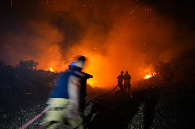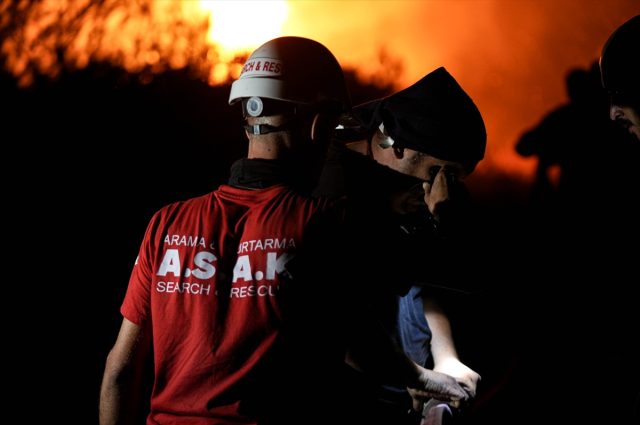 Orman yangını rüzgarın da etkisiyle kısa sürede büyürken dumanlar kentin birçok noktasından görüldü. Ekipler alevlere hem havadan hem de karadan yoğun şekilde müdahale etti. Yangında İzmir Orman Bölge Müdürlüğüne ait 6 uçak ve 9 helikopter havadan çalışma yaparken, 139 kara aracı ve toplam 593 personel görev aldı. Orman ekiplerinin yanı sıra itfaiye ve emniyete ait TOMA araçları da alevlere müdahalede bulundu.