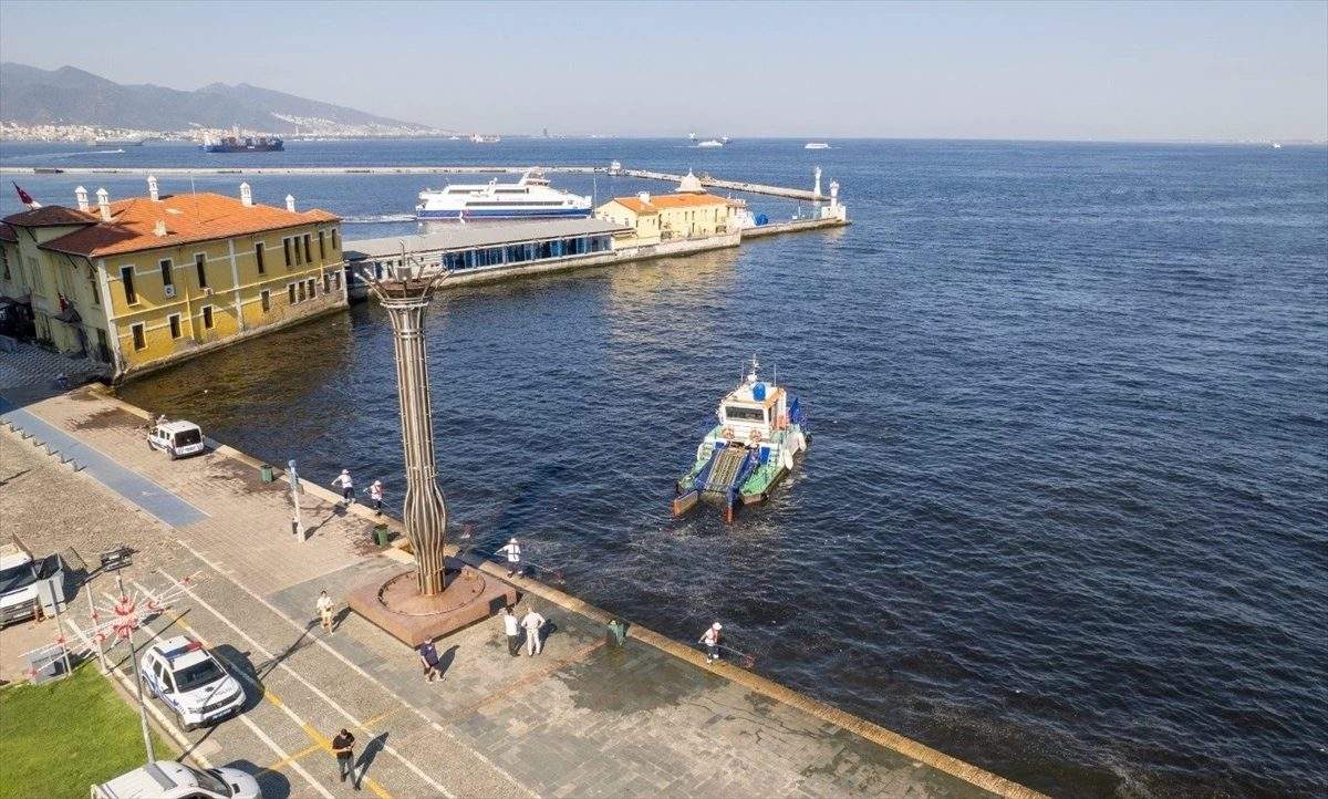 İzmir Büyükşehir Belediyesinden yapılan açıklamada, süpürge gemileriyle körfezde her gün temizlik çalışmaları yapıldığı belirtildi.