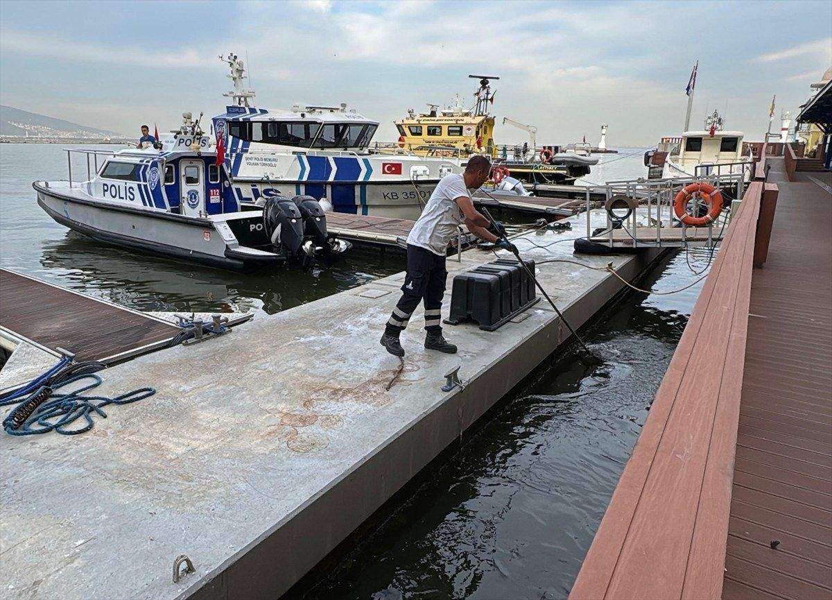 20 Ağustos’ta Bayraklı ilçesi Turan Sahili’ne ölü balıkların vurması ve kötü koku sorununun ortaya çıkması sonrası kirlilik kaynağının tespiti ve önüne geçilmesi için başlatılan çalışmalar sürerken bugün Konak ilçesindeki Pasaport iskelesi önlerinde denizin renginin kahverengiye döndüğü ve ölü balıkların bulunduğu görüldü.