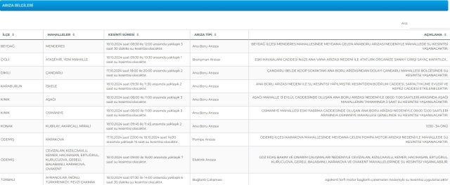 İZMİR SU KESİNTİSİ SORGULAMA EKRANI