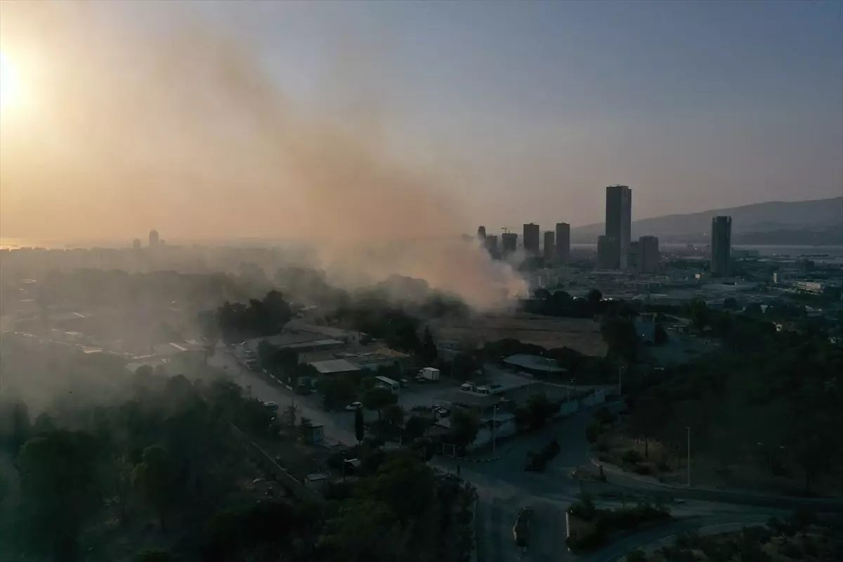 İzmir’in Konak ilçesinde, İZSU’nun su depolama sahasındaki arazide çıkan yangın ekiplerce kontrol altına alındı.